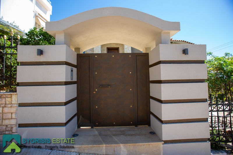 ATHENS VOULA Panorama, Newly Built Luxury Villa of 915 sq.m., constructed in 2016, 2 levels, ground floor – 1st floor, it is frontage and dual aspect, corner, bright, excellent layout, 3 bedrooms, 3 bathrooms, entrance hall, open plan kitchen with the living room, dining room, office, corridor, autonomous heating with heating oil, air conditioning, fireplace, solar water heater, security door, alarm security system, entrance camera intercom, satellite dish, covered parking space for 2 cars, storage room, garden, energy class A, hard wood flooring, energy efficient aluminum window frames with double glazing, screens and shutters, ergonomic designed kitchen with many cabinets, built-in appliances and a large stainless steel sink, large built-in wardrobes in the bedrooms, large bathrooms of high quality and aesthetics, large balconies front and back covered with pergola with unlimited mountain and sea views, few minutes from the most beautiful organized beaches of Attica, 34 minutes (24 km) from the port of Piraeus and only 25 minutes (20 km) from Eleftherios Venizelos International Airport.