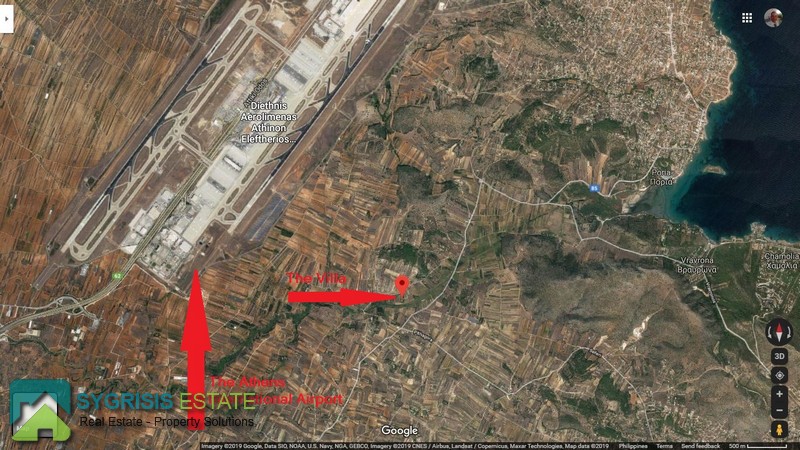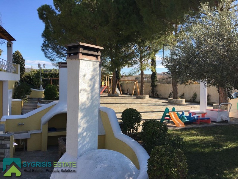 ATTICA MESOGAIA, Markopoulo, Luxury Villa of 400 sq.m., attic of 45 sq.m., on a plot of 4-acres garden, constructed in 1993, excellent layout, 6 bedrooms, 4 bathrooms, 1 WC, 2 kitchens, 2 spacious living rooms with a dining areas, storage room of 17 sq.m., parking, swiming pool with a pergola in front, basketball court, playground, BBQ area with a built-in bbq and oven, autonomous heating with heating oil, air conditioning, fireplace, security door, alarm security system, inside the massive plot there are plantations with fig trees and endless vineyards, Fully Furnished and equipped, tiles and hardwood floors, energy efficient aluminum window frames with double glazing and shutters, ergonomic designed kitchens with many cabinets and built-in appliances, large built-in wardrobes in the bedrooms, 2 bathrooms with Jacuzzi, huge porch with mounatin views, located in Markopoulo in the Attica region, located 10,4 km from Athens International Airport “Eleftherios Venizelos”, 4,3 km from the Archaeological Museum of Vravrona, 5,1 km from Sandy Beaches and Sea, 14,2 km from the Attica Zoological Park, 14,9 km from the Huge Mall of McArthurGlen Designer Outlet Athens and 29 km from the center of Athens and all tourist attractions.