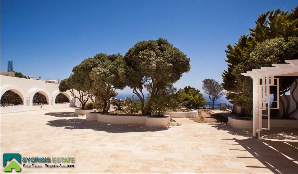SANTORINI, Imerovigli, Luxury Villa of 360 sq.m., on a plot of 900 sq.m., construction 2007, 2 levels, ground floor – 1st floor, it is frontage and dual aspect, bright, excellent layout, 4 bedrooms (1 master), 3 bathrooms, 2 wc, open plan kitchen with living room and dining area, storage room of 40 sq.m., 1 office room, 1 dressing room (construction Linea Quattro), fully furnished and equipped, energy efficient aluminum window frames with triple glazed windows, screens and shutters, wooden floors, autonomous heating with heating oil, air conditioning, energy efficient fireplace, Solar water heater system,security door, alarm security system, CCTV Security Cameras, pergolas, roof terrace, garden of 600 sq.m. with waterfalls and trees, permit for a swimming pool, outdoor Jacuzzi, perfect location, and orientation, open horizon, large and wide terraces with panoramic view of the island and the Aegean sea, Brick Barbecue, autonomous water tank of 160 cubic meters, parking space for 2 cars, with furnished verandas where you can relax and enjoy your meal or drink while admiring the view of the Aegean Sea at the morning with the beautiful sunrise. The house include a fully equipped kitchen, lounge and outdoor barbeque facilities, within walking distance you will find local taverns serving fresh seafood and other Greek dishes in front of Caldera’s majesty . You can go hiking in the picturesque vineyards and chapels, or visit the nearby wineries to taste the famous Santorini wine. Fira the capital and cosmopolitan city is 2 km away, the romantic Oia is 8 km away, the port 9 km and the airport 6.7 km.