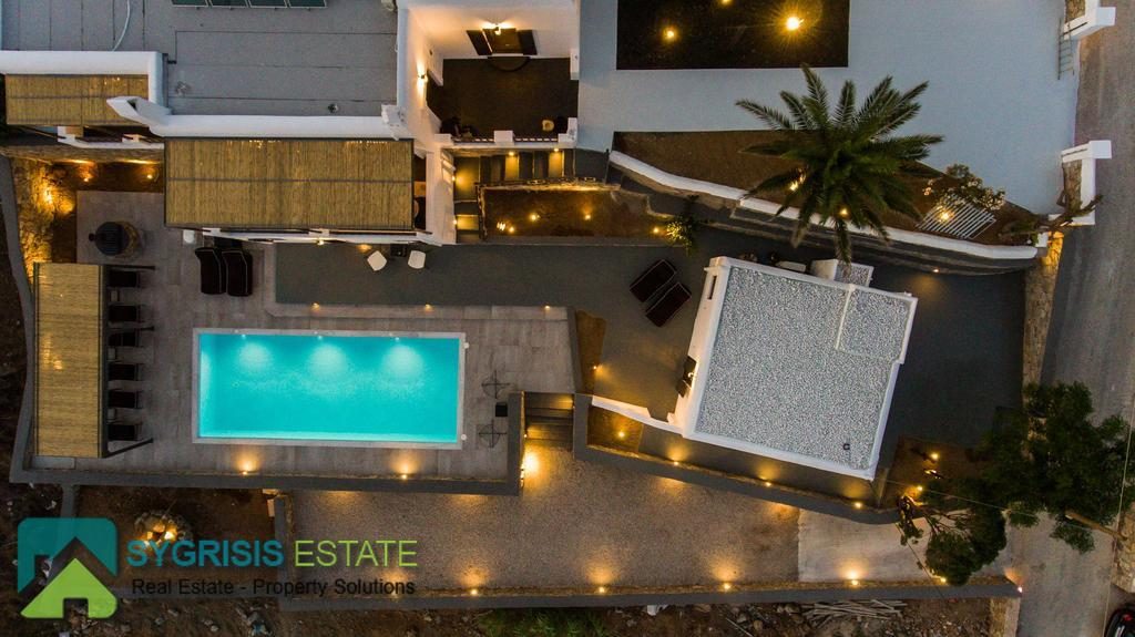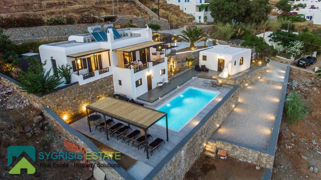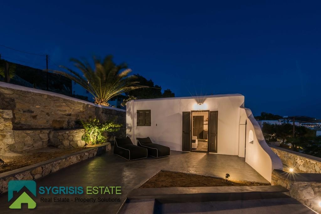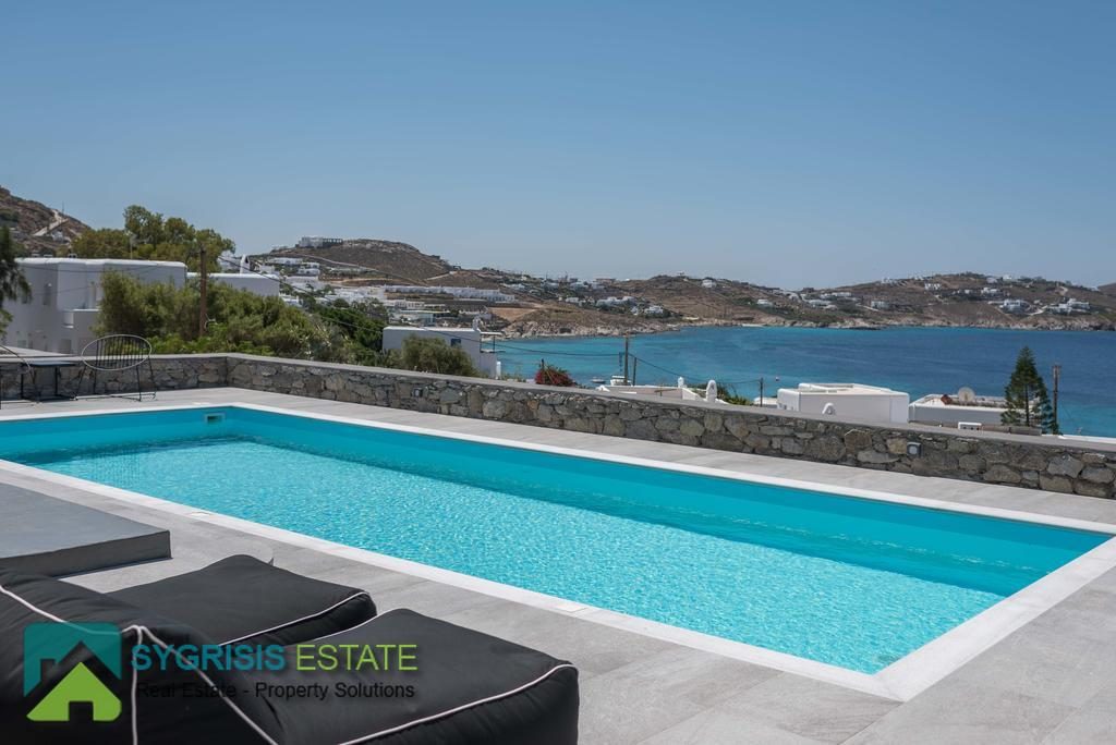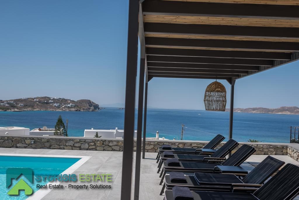 MYKONOS Agios Ioannis Diakoftis, newly built Luxury Villa 250 sq.m. , on a plot of 1.100 sq.m., built in 2016, ground floor – 1st, facade, through, 5 bedrooms (the 3 master), 5 bathrooms, 4 wc, traditional villa furnished, central heating, air-condition, fireplace, security door, solar water heater, unlimited sea view, parking space, storage, garden, pool, suitable for professional use, located in Agios Ioannis, 5km from the new port of Mykonos and 3km from the airport, this is a new modern villa with modern decoration that is separated in 3 residences, the studio consists of a space that has been distributed to make it functional with all the necessary amenities, it has a kitchen and living room in a single room with a sofa bed, a fully equipped open plan kitchen and a dining area, an electric cooker with an oven , refrigerator and microwave, 1 bedroom apartment and 1 double sofa bed, features a living room, a fully equipped kitchen and a dining area, an electric stove with oven, a fridge and a microwave, a washing machine, a hair dryer, 3-bedroom apartment, staircase leading to the bedrooms, 2 double beds and a double sofa bed in the living room, fully equipped kitchen and dining area, stove with oven, fridge, microwave, washing machine, iron with ironing board and hairdryer.