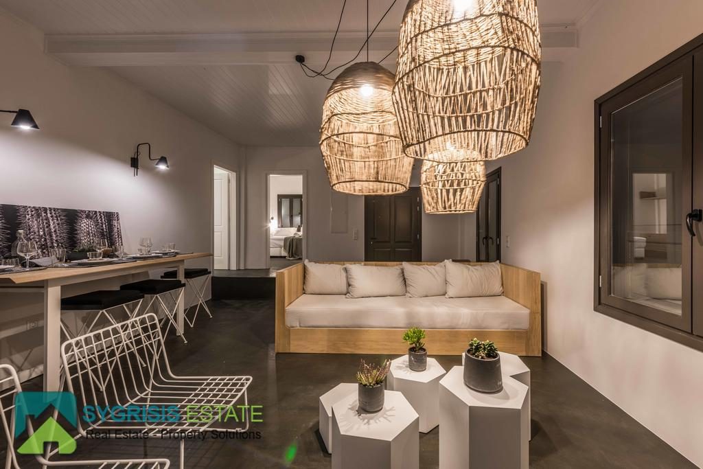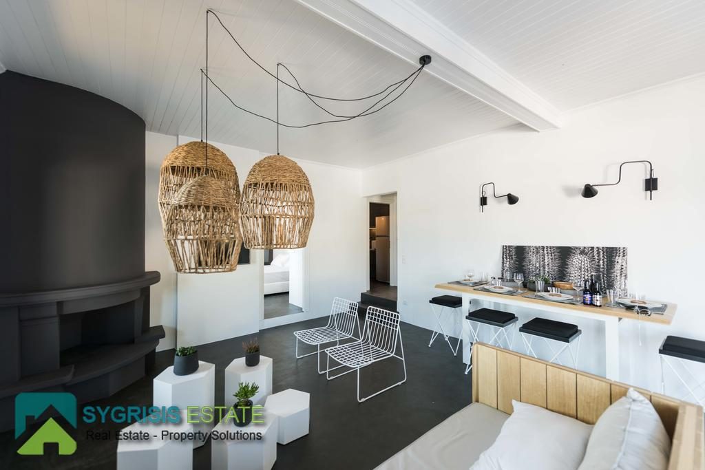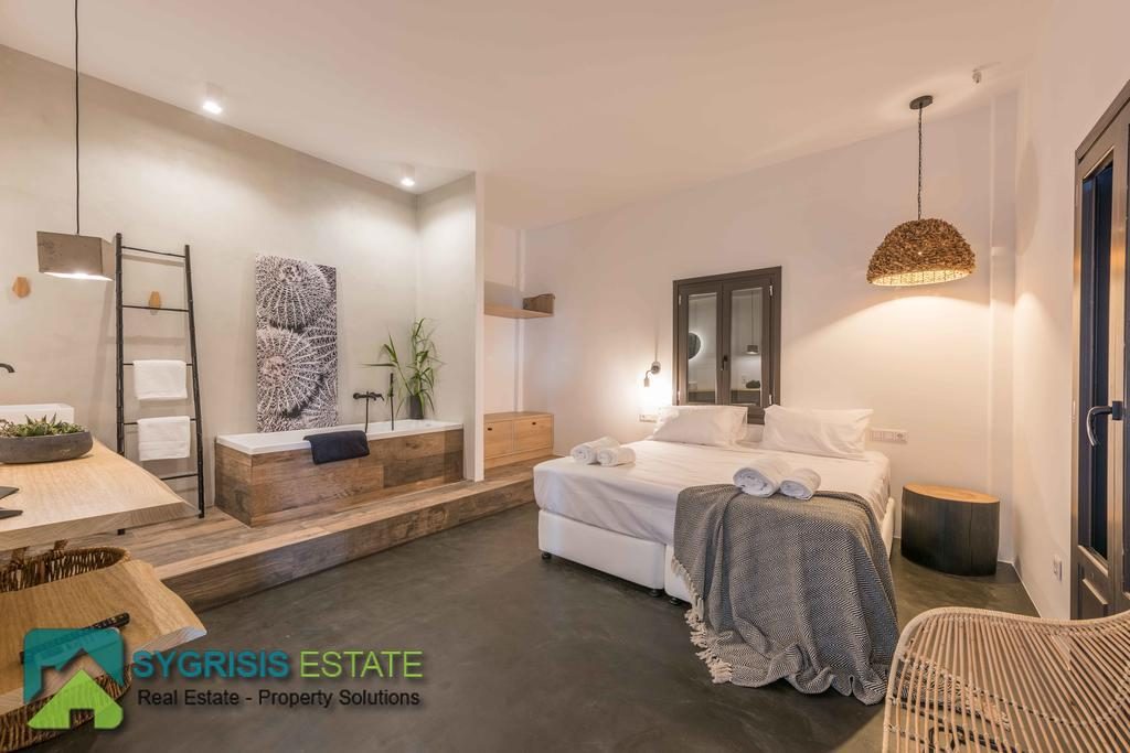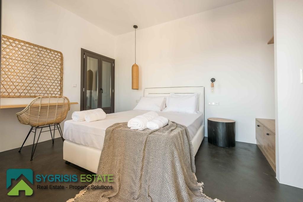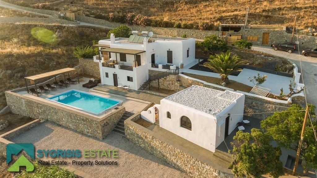 MYKONOS Agios Ioannis Diakoftis, newly built Luxury Villa 250 sq.m. , on a plot of 1.100 sq.m., built in 2016, ground floor – 1st, facade, through, 5 bedrooms (the 3 master), 5 bathrooms, 4 wc, traditional villa furnished, central heating, air-condition, fireplace, security door, solar water heater, unlimited sea view, parking space, storage, garden, pool, suitable for professional use, located in Agios Ioannis, 5km from the new port of Mykonos and 3km from the airport, this is a new modern villa with modern decoration that is separated in 3 residences, the studio consists of a space that has been distributed to make it functional with all the necessary amenities, it has a kitchen and living room in a single room with a sofa bed, a fully equipped open plan kitchen and a dining area, an electric cooker with an oven , refrigerator and microwave, 1 bedroom apartment and 1 double sofa bed, features a living room, a fully equipped kitchen and a dining area, an electric stove with oven, a fridge and a microwave, a washing machine, a hair dryer, 3-bedroom apartment, staircase leading to the bedrooms, 2 double beds and a double sofa bed in the living room, fully equipped kitchen and dining area, stove with oven, fridge, microwave, washing machine, iron with ironing board and hairdryer.