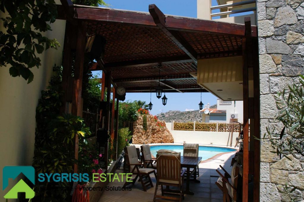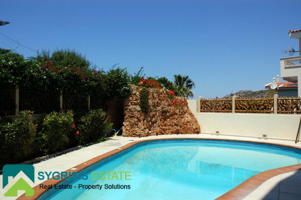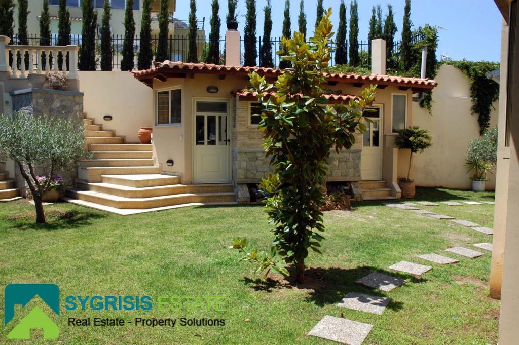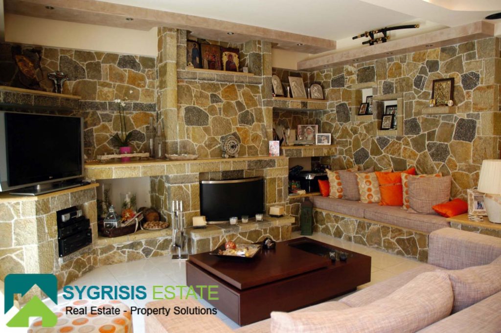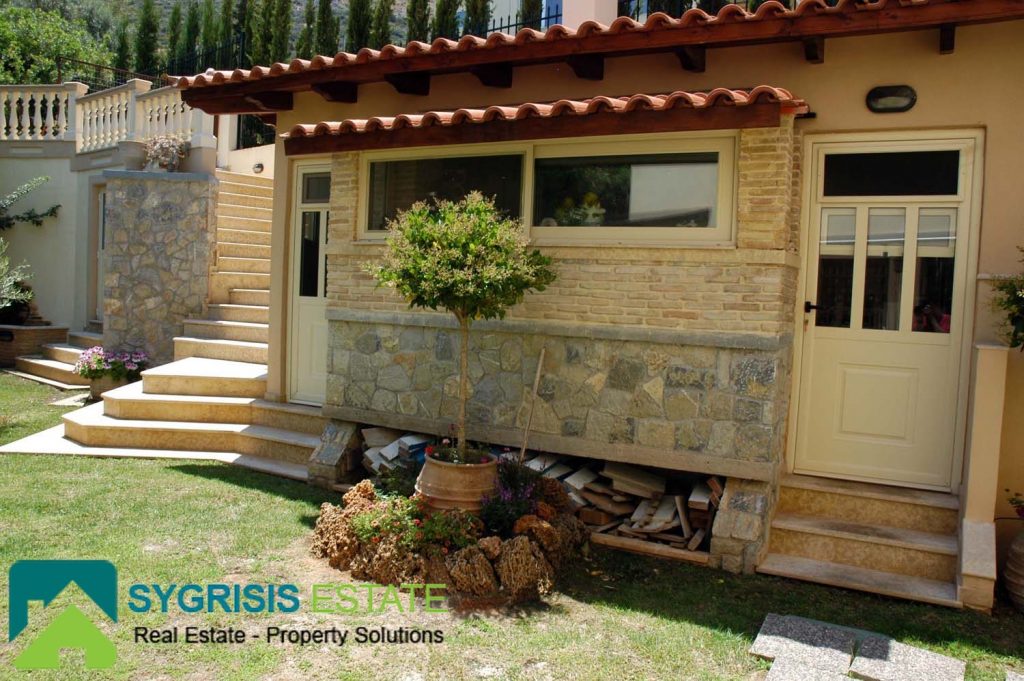 Details: The house was built by the owner himself and not by any other manufacture company. It is lined with stone, it has a handmade perimeter fence, a security door, and panoramic round view to the mountain and to the Aegean Sea. The house is in a closed, guarded seaside resort of luxury homes. It is sold fully furnished and equipped. All appliances and furniture are of the latest technology, high quality and construction.