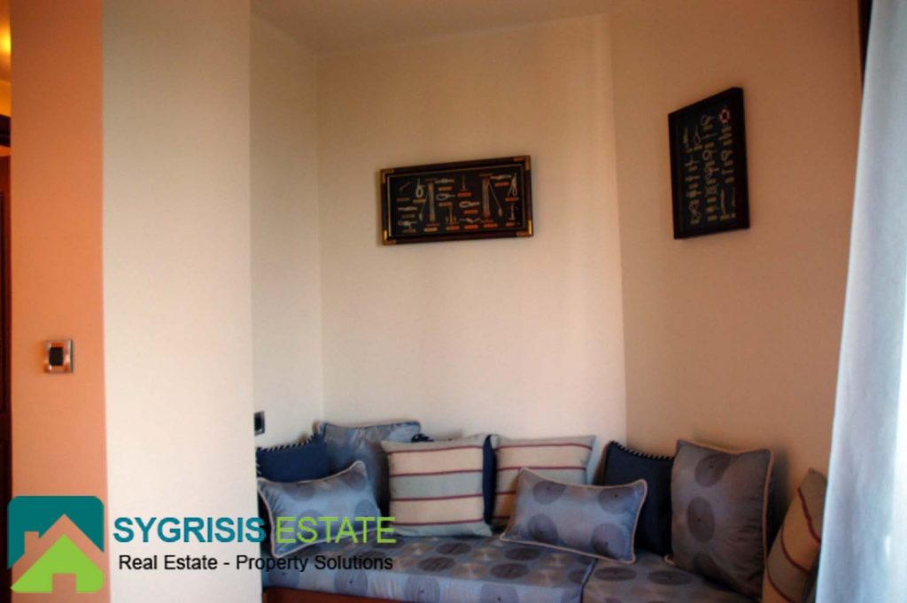 A guest room that provides the guest full independence is located on the second floor. It has its own big bathroom with a bathtub, a double bed, its own television and a living room with a comfortable couch with a great view to the Aegean sea, either from inside the guest room or from the outside, on its private balcony to the front side of the house.