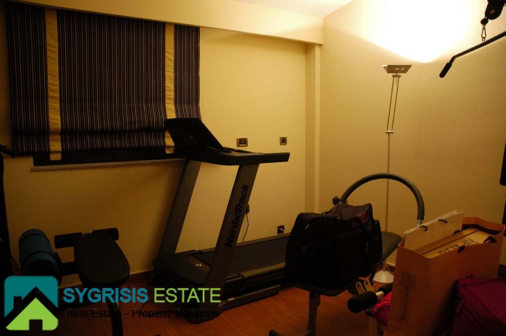 The gym is located on the third floor, next to the master bedroom. It has a big corner balcony with a great view to the Aegean sea. The room can be used either as a gym, or a fourth bedroom or an office, according to the owner’s needs.