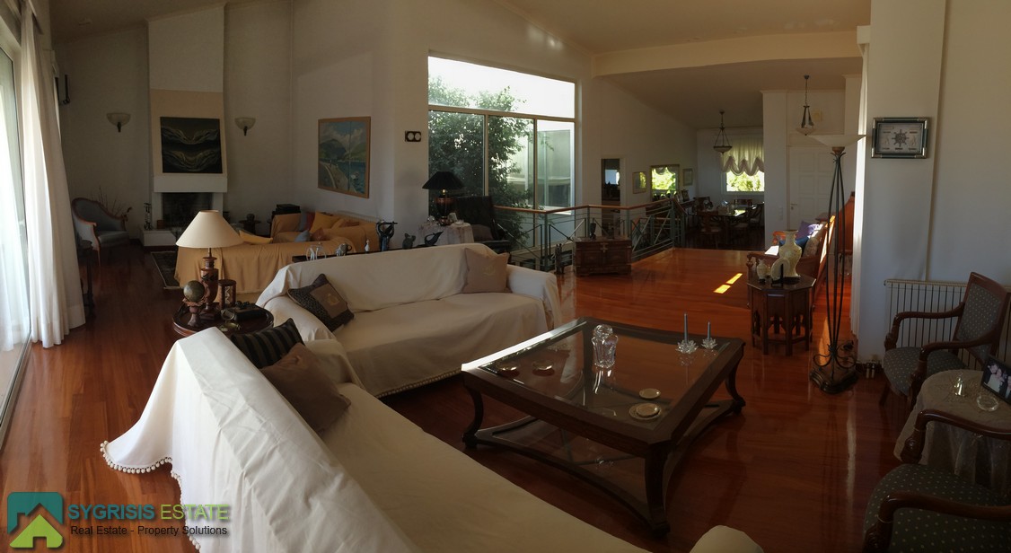 Ευρύχωρο σαλόνι υποδοχής και σαλόνι με τζάκι