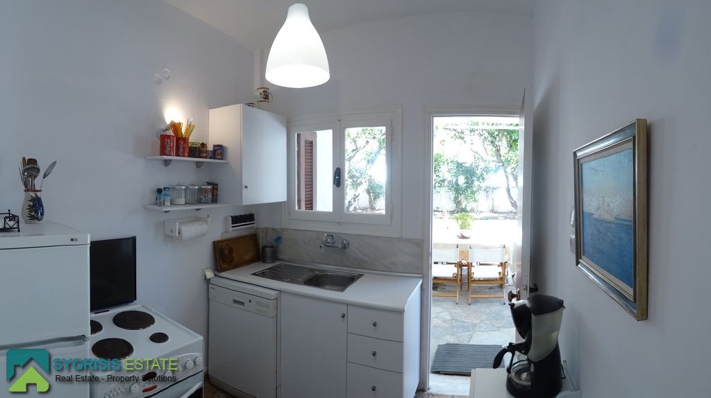The living room leads to a spacious veranda with view to Saronic Gulf, ideal for relaxation or dinner with friends. The lower unit consists of 1 spacious bedroom, a small living room, a kitchen, and a bathroom. The lower unit is not connected indoors with the upper unit and has own access to the front garden with a dining place for 4 people.