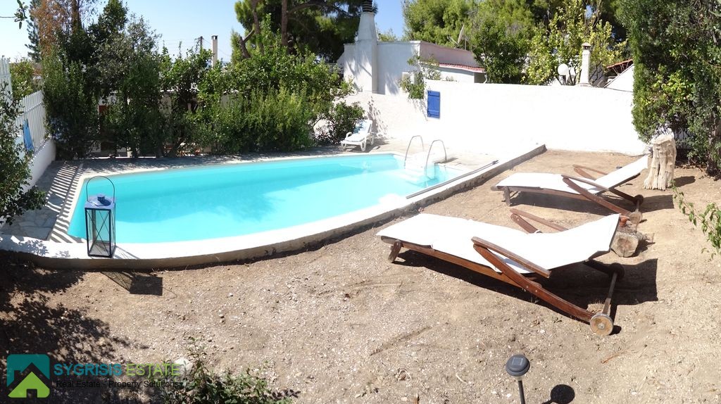 ATHENS KOROPI Agia Marina, Maisonette of 140 sq.m., on a plot of 420 sq.m., garden of 300 sq.m, constructed in 1968, renovated in 2016, ground – first floor, 4 bedrooms (1 master), 2 bathrooms, 2 levels, air conditioning, fireplace, awnings, unlimited view of the sea, warehouse of 15 sq.m,swimming pool,This wonderful Maisonette is viewing Saronic Gulf with a private swimming pool only 200 meters from a beautiful small beach. The location gives the opportunity to enjoy the sea in walking distance while with a short drive you can reach vibrant night life and visit Athens sightseeing.