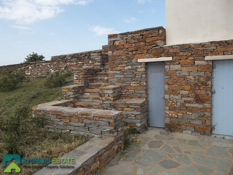 CYCLADES ISLANDS KEA Grykos, New built Maisonette of 78 sq.m., on a plot of 642 sq.m., constructed in 2018, 2 levels of 45 and 33 sq.m., Ground floor – 1st, frontage and dual aspect, traditional, stonehouse, 2 bedrooms, 1 bathroom, 1 wc, open plan kitchen with the living room, autonomous heating, fireplace, unlimited view to the sea, open parking, storage room, garden, it is on the highest point of the parcel and has a total area of 78, 54 square meters, an internal staircase connect the two levels, the first level is the main entrance with an open plan kitchen with living room and a fireplace, 1 wc, a balcony and a large courtyard with unlimited view of the Aegean Sea, through the internal staircase we are leading to the second level where are the two bedrooms, the main batheroom, a storage room and a very large courtyard, the two external levels of the maisonette are connected with a stone-built external staircase, while the private surrounding space has a surface of 642, 28 square meters and is fully configured and there is the possibility to park at least in this area four cars.