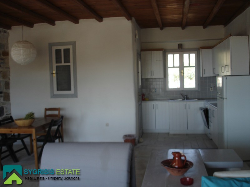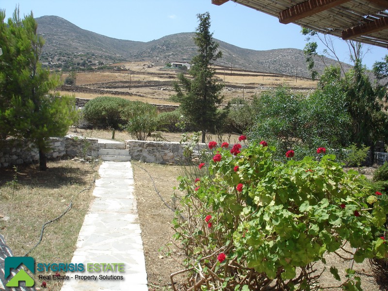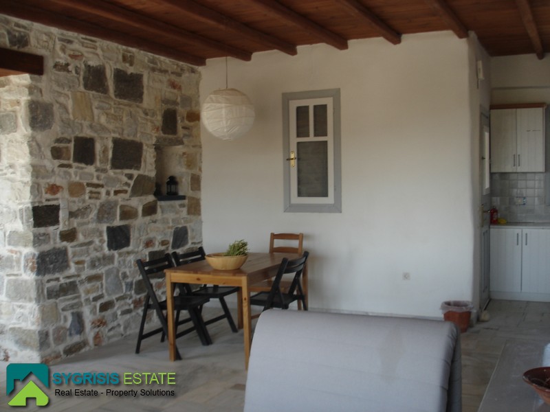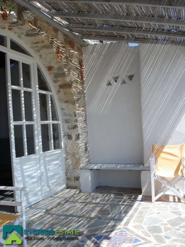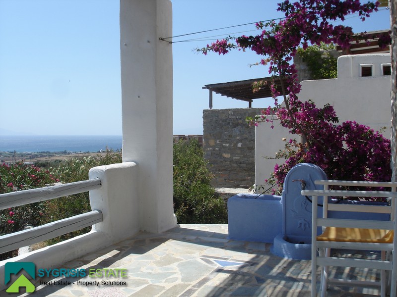 Paros, Tzanes, Chryssi Akti, newly built maisonette of 103 sq.m., built in 2009, 2 levels, traditional, furnished, facade, bright, 2 bedrooms, 2 bathrooms, open-plan kitchen with the living room, autonomous heating, sea view, parking space, garden 400 sq.m., the ground floor consists the open plan kitchen with dining room and the living room, a storage room and 1 bathroom, balconies with pergola, at the lower level there are 2 bedrooms and a bathroom, one bedroom has a window and the other balcony doors with access to the garden. It is located in a complex, mutually independent houses in the area Tzanes Over the Chryssi Akti. The common facilities of the complex are a private open parking of 12 sq.m., a tennis court, and a pool area with Bar and BBQ, from the living room and from the balcony a unique view of the Golden Beach and the Aegean Sea.