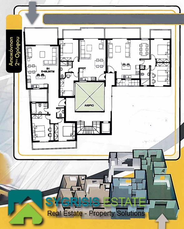 ΒΥΡΩΝΑΣ νεόδμητο διαμέρισμα 87 τ.μ., σε σύγχρονη υπό ανέγερση ενεργειακή πολυκατοικία (εκτιμώμενη παράδοση τέλος Νοεμβρίου 2017), 1ου ορόφου, προσόψεως, διαμπερές, 2 υπνοδωμάτια, 1 μπάνιο, 1 wc, ενιαίο σαλόνι κουζίνα, αυτόνομη θέρμανση φυσικού αερίου με αντλίες θερμότητας – ψύξης, ηλιακός θερμοσίφωνας, κλειστό πάρκιν, ενεργ. κλ. Α+, ενεργειακά κουφώματα αλουμινίου με διπλά τζάμια σίτες και παντζούρια, μεγάλες βεράντες μπρος και πίσω, πόρτα ασφαλείας, σύστημα συναγερμού, φωτισμός led, σύστημα smart home, φωτοβολταϊκό σύστημα αυτοπαραγωγής ηλεκτρικής ενέργειας, ελάχιστα κοινόχρηστα, κοντά σε συγκοινωνίες, σχολεία σούπερ μάρκετ και αγορά.