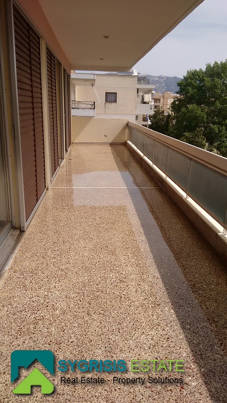 ATHENS HALANDRI Ano, penthouse apartment 110 sm, construction 1985, renovated 2017, 4th floor, frontage and dual aspect apartment, 2 bedrooms (1 master), 1 bathroom, 1 wc, hallway, large living room, large kitchen, security door, sliding aluminum window frames with double glazing and shutters, oak floors in the bedrooms, renovated kitchen with ergonomic cabinets, renovated bathroom with shower cabin, 30 sqm balcony on the facade with a wonderful view of the surrounding mountains of Attica, large wardrobes in the bedrooms, storage room inside the apartment, pre-installation for solar water heater system, to a safe area 10 minutes from the suburban and Halandri Metro station, opposite the ravine Halandri, quiet neighborhood near the market, supermarkets, public transportation.