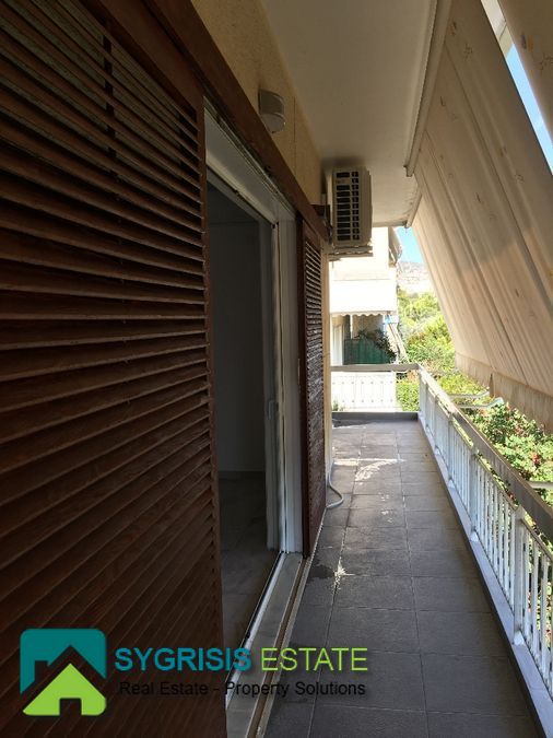 VOULA Kato – Evriali, apartment penthouse 85 sqm, construction 1975, renovated 2017, 2nd floor, frontage, dual aspect and corner apartment, 2 bedrooms, 1 bathroom, large living room, kitchen, autonomous heating system with natural gas, security door, solar water heater, storage room, without elevator, sliding aluminum window frames with double glazing and shutters, 3 balconies with awnings, garden, new electric and plumbing and new floors throughout the apartment and balconies, renovated bathroom and kitchen, 4 new air-conditioners , new radiators, new doors and security door, 150 meters from the A’ beach of Voula and TRAM, infront of a park with a playground and basketball court, Pets Allowed.