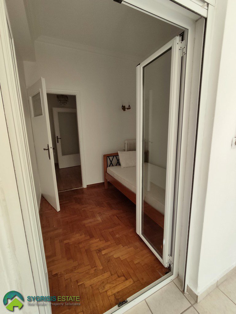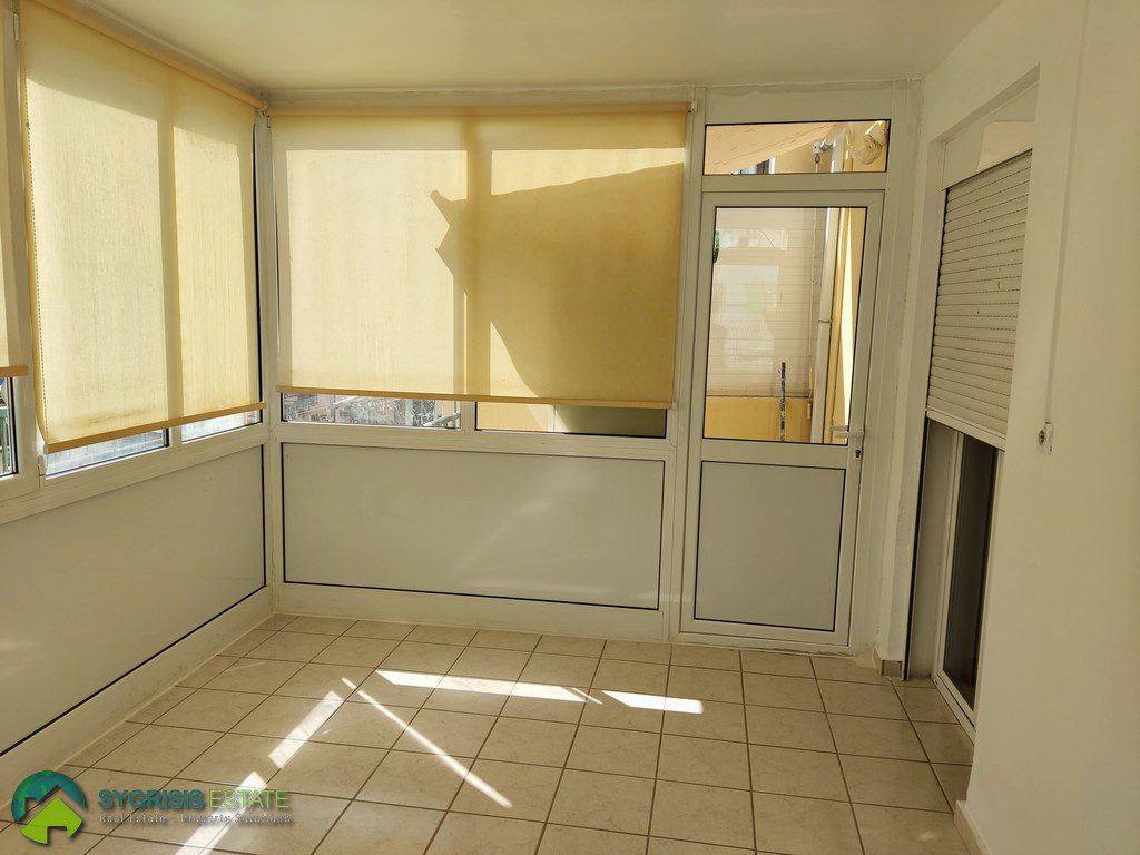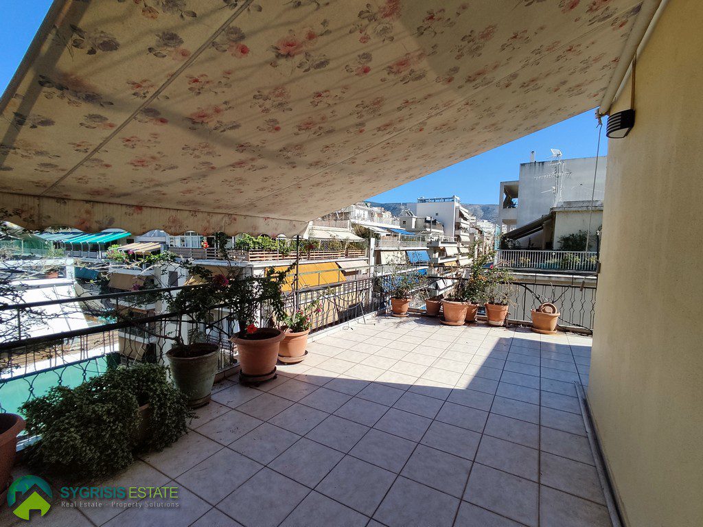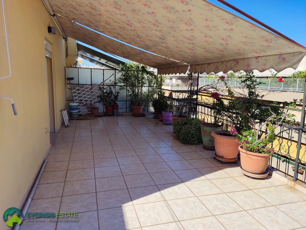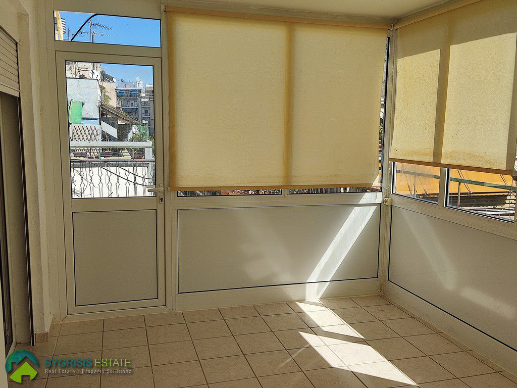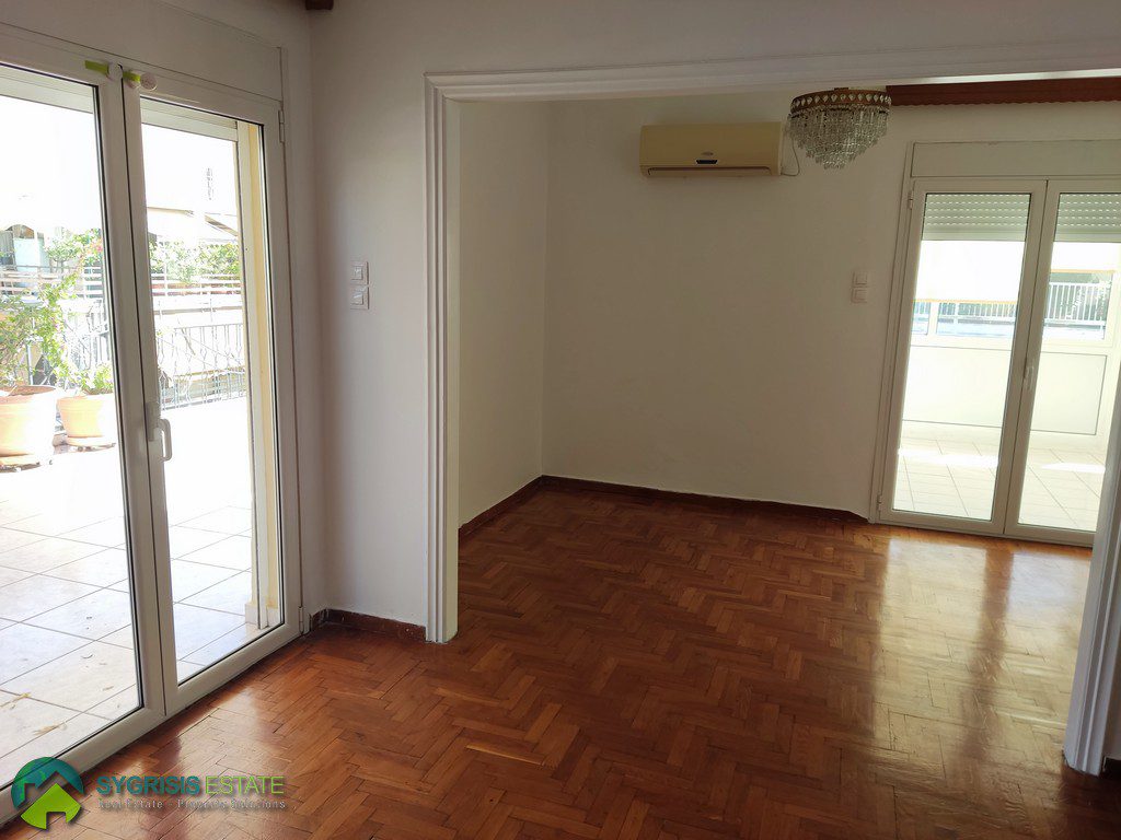 ATHINA PAKRATI, Penthouse Apartment 80 sq.m., 5th floor, frontage, airy, bright, excellent layout, 2 bedrooms, 1 bathroom renovated with new washing machine, reception hall, living room with dining area, kitchen with refrigerator and ergonomic cupboards with exit on the balcony, semi-outdoor space – closed for office or cloakroom, large terrace on the facade and perimeter of the house with a view, energy efficient aluminum frames with double glazing and shutters, wooden floors, tiles in the bathroom, security door, in the heart of Pagratio, direct access to all amenities.It is also given for professional accommodation.