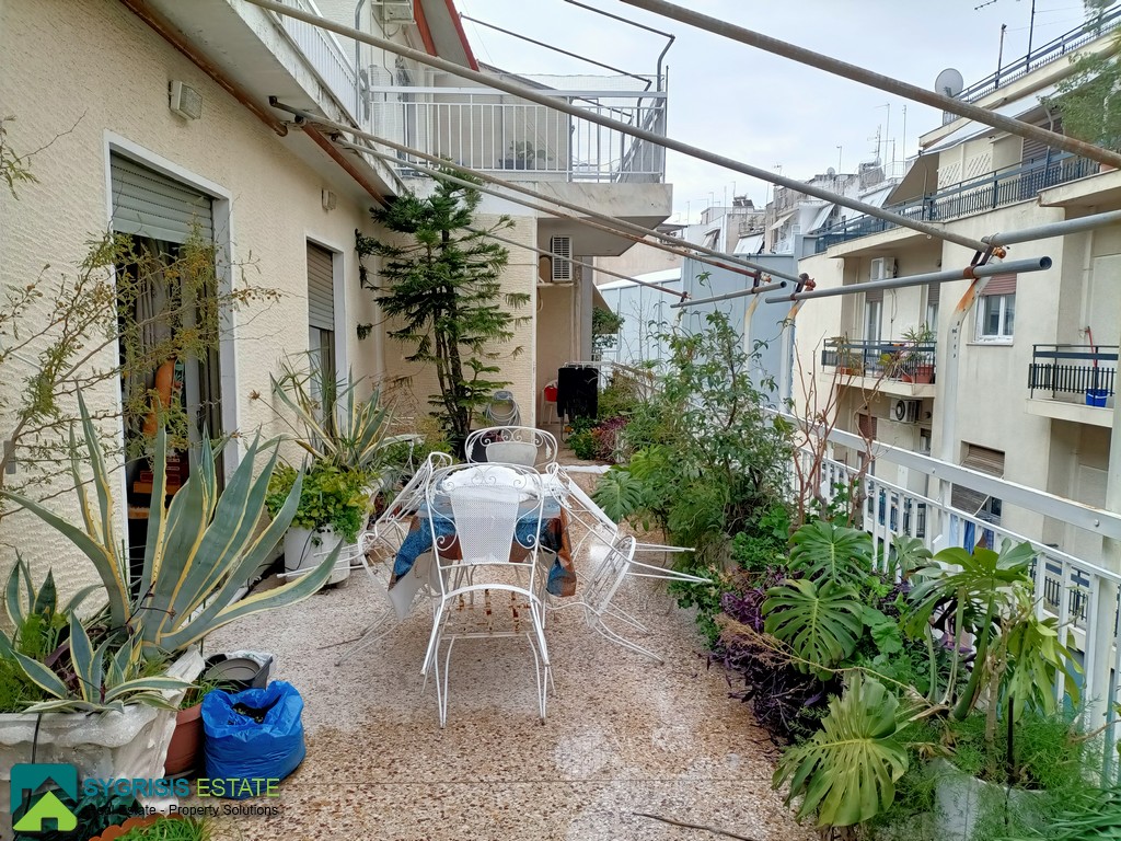 ΑΘΗΝΑ Παγκράτι, Πρώτο Ρετιρέ, Διαμέρισμα 120 τ.μ., 3ου ορόφου, κατασκευή 1980, πολύ καλή κατάσταση, προσόψεως, διαμπερές, φωτεινό, άριστη διαρρύθμιση, 3 υπνοδωμάτια, 1 μπάνιο, 1 WC, μεγάλο χολ υποδοχής, κουζίνα, μεγάλο σαλόνι με χώρο τραπεζαρίας, διάδρομος, τεράστια βεράντα στην πρόσοψη 60 τ.μ. με τέντες και θέα τον Λυκαβηττό με πρόσβαση σε αυτή από το σαλόνι και 2 υπνοδωμάτια, μπαλκόνι που βλέπει στον ακάλυπτο με πρόσβαση σε αυτό από το χολ υποδοχής, την κουζίνα και το 3ο υπνοδωμάτιο, κεντρική θέρμανση πετρελαίου με δυνατότητα σύνδεσης φυσικού αερίου, κλιματισμός, ηλιακός θερμοσίφωνας, πόρτα ασφαλείας, θυροτηλέφωνο, συρόμενα κουφώματα αλουμινίου με παντζούρια, δάπεδα μάρμαρα σε χολ υποδοχής, σαλόνι και τραπεζαρία, πλακάκια σε μπάνια, κουζίνα και διάδρομο, δρύϊνα δάπεδα στα υπνοδωμάτια, μεγάλη άνετη κουζίνα με διπλό ανοξείδωτο νεροχύτη και δικό της μπαλκόνι, μεγάλες εντοιχισμένες ντουλάπες στα υπνοδωμάτια, μεγάλο άνετο λουτρό με μπανιέρα, βρίσκεται λίγα μόλις μέτρα από την Υμηττού και την πλατεία Αγίου Νικολάου, σε πολύ κοντινό σημείο από όπου θα κατασκευαστεί ο νέος Σταθμός Μετρό “ΚΑΙΣΑΡΙΑΝΗ”, πλησίον αγοράς και συγκοινωνιών.