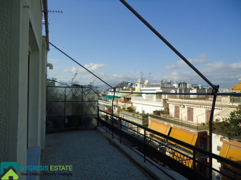 ATHENS Vyronas, Penthouse Apartment of 50 sq.m. 4th floor, it is a frontage ans dual aspect apartment, bright, in a quiet neighborhood, in good condition, 1 bedroom, living room, kitchen, bathroom, hallway, central heating with heating oil, oak floors in living room and bedroom, mosaic in the rest of the apartment, energy efficient aluminum frames with double glazed windows and shutters, ergonomic cabinets in the kitchen with marble sink, large built-in wardrobe in the bedroom, comfortable bathroom with bathtub, large balcony with awnings and unlimited view, electricity night low rate charges, close to schools, supermarket, public market and public transportation.