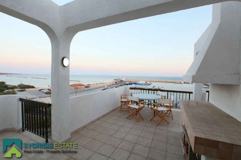 CYPRUS, Larnaca, Marina Zygi, Penthouse Apartment of 80 sq.m., constructed in 1983, renovated in 2015, 2nd floor, it is a frontage and dual aspect apartment, corner, bright, excellent layout, 2 bedrooms, 1 bathroom, furnished, open plan kitchen, autonomous heating, security, solar water heater, unlimited sea view, underground parking, warehouse, fully furnished and equipped (Refrigerator, oven, stove, dishwasher, washing machine, TV), fully renovated with new electrical and plumbing systems, new electrical power panel and switches, hardwood flooring in the bedrooms, ceramic tiles flooring in living room and kitchen, energy efficient aluminum window frames with double glazing, ergonomic cabinets in the kitchen with stainless steel sink, large bedrooms with wardrobes, large bathroom with bathtub, spacious balcony on the facade of 62 sq.m. with pergola and barbeque overlooking the Marina and the Aegean Sea, 15 minutes from Limassol, 15 minutes from Larnaca and the international airport, 30 minutes from Nicosia, the parking is for 2 cars with a remote-controlled garage door, the storage room is next to the parking lot, the apartment is located 40 meters from a sandy beach and right in front of the Zygi Marina, walking distance from restaurants, cafes and supermarkets.