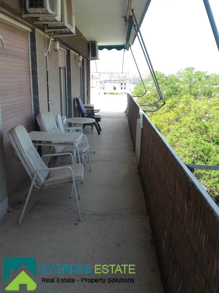 HALANDRI Dimarheio, penthouse apartment 97 sq.m., 4th, construction 1971, it needs renovation, frontage and dual aspect apartment, bright, corner, high-ceilinged and very bright, it is threefold, 2 bedrooms, 1 bathroom, 1 wc, central heating and soon will change to autonomous with natural gas, Air conditioning, awnings, unlimited view, it has very large balconies 120 sqm perimetrically with excellent view to the forest of Rematia, storage room at the basement of 6 sqm, close to market, transportation, center of Halandri.