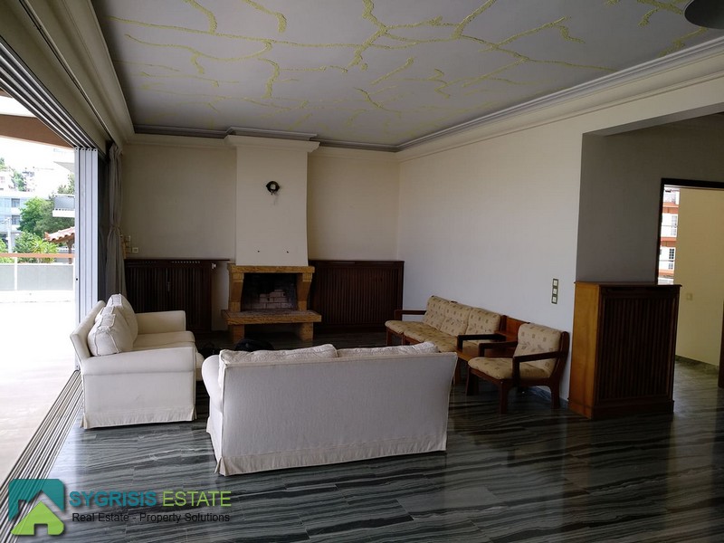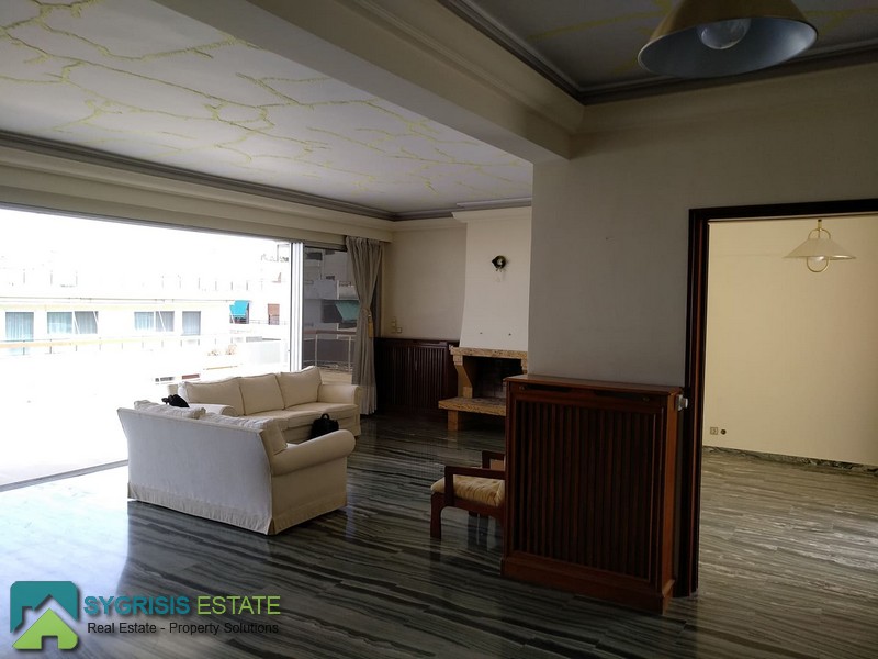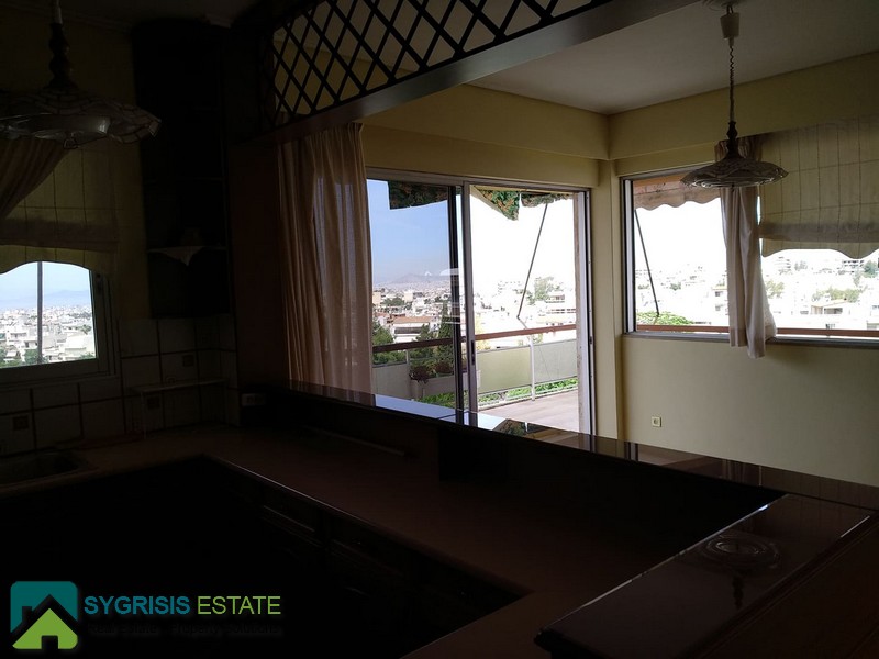 ATHENS ILIOUPOLI Kato, Penthouse Floor-Through Apartment of 188 sq.m., constructed in 1985, excellent condition, 5th floor, it is a frontage and dual aspect apartment, corner, bright, excellent layout, 5 bedrooms, 1 bathroom, 2 WC, large living room, dining area in kitchen, study room, autonomous heating with natural gas with calorimeter and boiler for hot water, air conditioning, fireplace, security door, 3 covered parking spaces, storage room of 10 sq.m., marble flooring in living room, kitchen and dining area, hardwood flooring in the bedrooms, sliding aluminum window frames with double glazing and shutters, spacious living room with furniture bar, ergonomic cabinets in the open plan kitchen with dining area, large built-in wardrobes in the bedrooms, large bathroom with bathtub, huge balcony all around of the apartment of 230 sq.m. covered with awnings and unlimited sea views, an excellent apartment in a peaceful neighborhood, close to schools, pharmacies, banks, bakeries, cafes, restaurants and transportation.