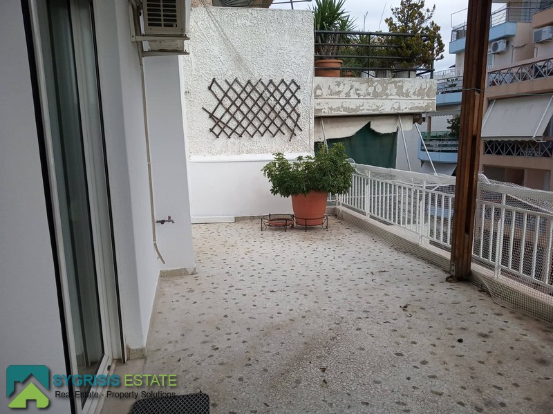 ATHENS PAGRATI, Aghios Artemios, Penthouse Floor-Through Apartment of 87 sq.m., renovated, 4th floor, it is a frontage and dual aspect apartment, bright, excellent layout, 2 bedrooms, bathroom, living room, kitchen, corridor, central heating with heating oil, air-conditioning, security door, solar water heater, energy-efficient aluminum window frames with double glazing and roller shutters, mosaic flooring in the living room and one bedroom, hardwood flooring in the second bedroom, new tiles flooring in the kitchen, new ergonomic cabinets in the kitchen with double stainless steel sink, built-in wardrobes in the Bedrooms, large bathroom with bathtub, large balcony on the facade of 25 sq.m. covered with pergola, balconies covered with awnings and sea views in the bedrooms, newly painted, direct access to all amenities, 10 minutes walking distance from “Aghios Ioannis” Metro Station, easy access to all facilities, near schools, supermarket, pharmacies, bakeries, banks, cafes, restaurants, commercial stores, and public transportation.
