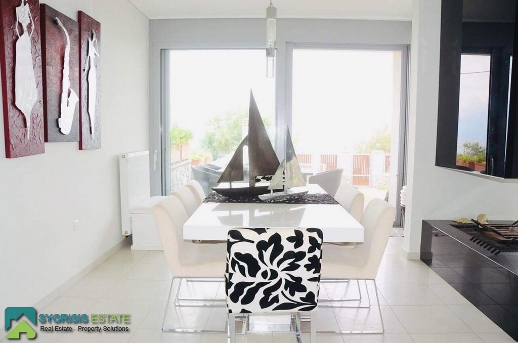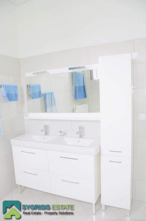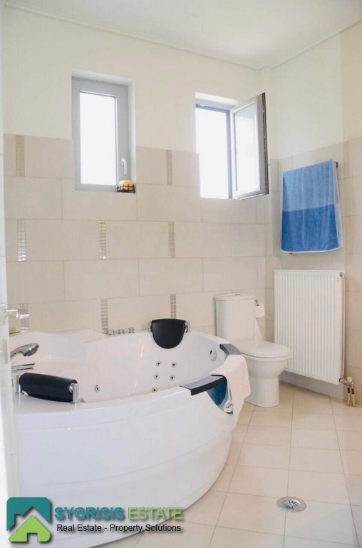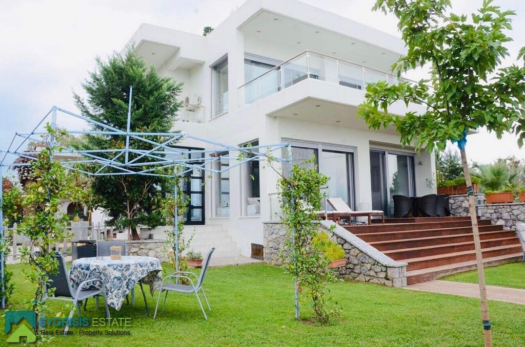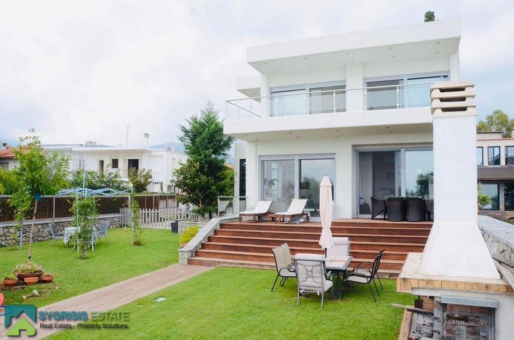 Lamia, Stylida, Seaside Villa, 190sq.m. house on a plot of 500sqm, construction of 2009, 2 levels, ground floor – 1st, frontage, airy, bright, excellent layout, 4 bedrooms, 3 bathrooms, hall, living room, kitchen, dining room, office, hallway, autonomous oil heating, air conditioning, solar water heater, boiler, jacuzzi, boiler, energy thermal break aluminum frames with double glazing, screens and shutters, ergonomically designed kitchen with many cabinets, built-in appliances, and large stainless steel sink, large wall-mounted, large front and rear terraces covered and unrestricted mountain – sea, garden, 2 parking, barbeque, 2 steps from the beach which is sandy with fine gravel. Next is the old Athens – Thessaloniki National Road, 1,5 hours away from Athens and 2,5 hours from Thessaloniki.