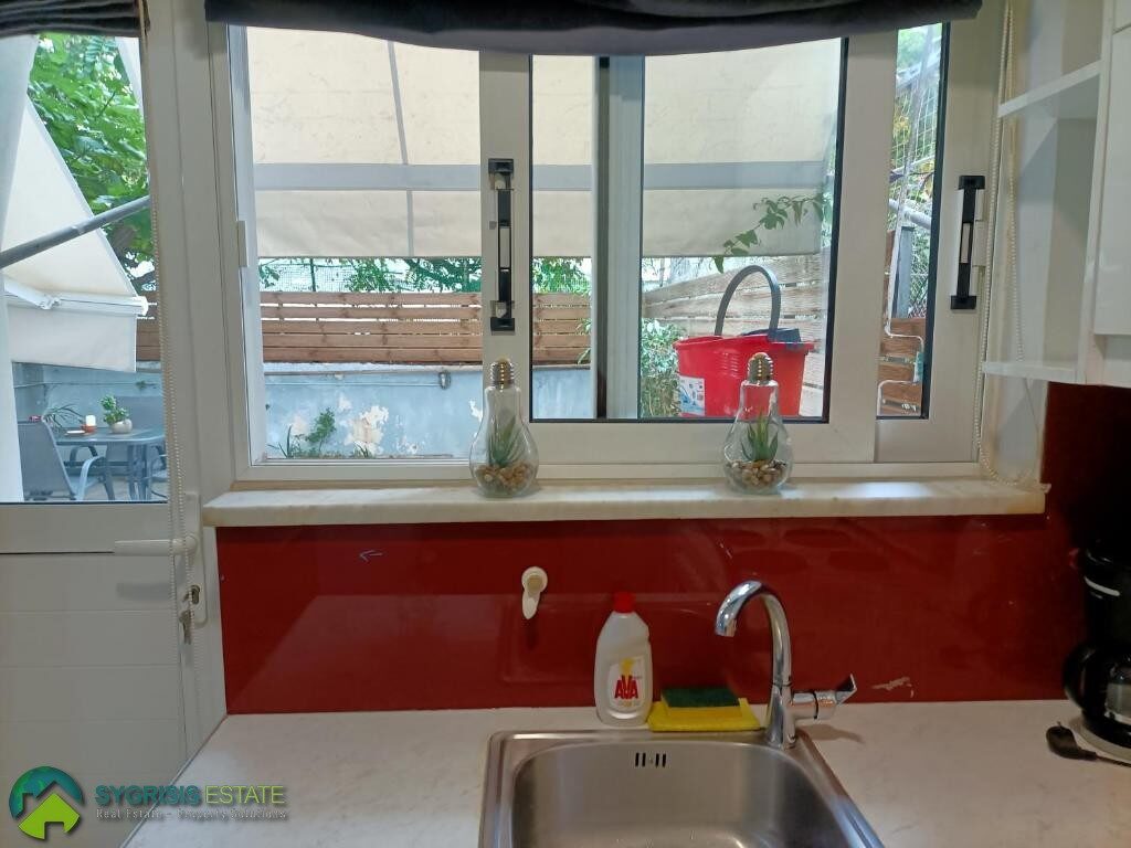 ATHENS NEOS KOSMOS, Studio Apartment of 40 sq.m., Ground Floor, Interior, constructed in 1980, fully renovated in 2019, excellent layout, fully furnished and equipped, bedroom, bathroom, kitchen, seating area, backyard of 35 sq.m., security door, air-conditioning, new ceramic tiles flooring, energy-efficient aluminum window frames with screens and electric roller shutters, new electrical and plumbing systems, ergonomic kitchen cabinets with stainless sink and electrical appliances, one two-door wardrobe, bathroom with walk-in shower cabin, the apartment is outstanding because of its location, is situated 10 minutes walking distance from FIX Metro Station. You can find supermarkets within walking distance (2 minutes away). Ideal for students.