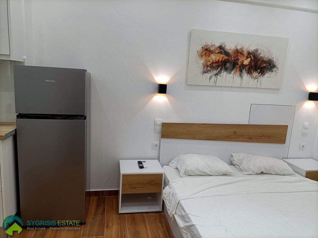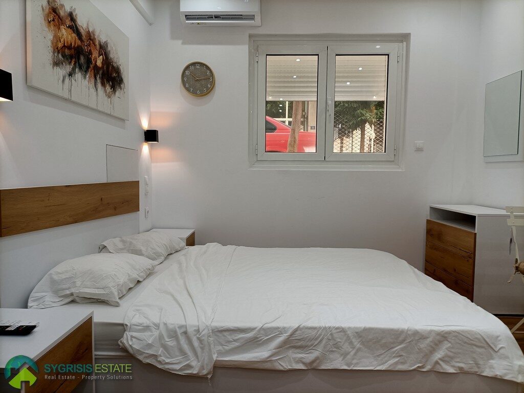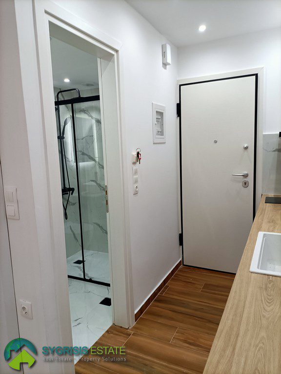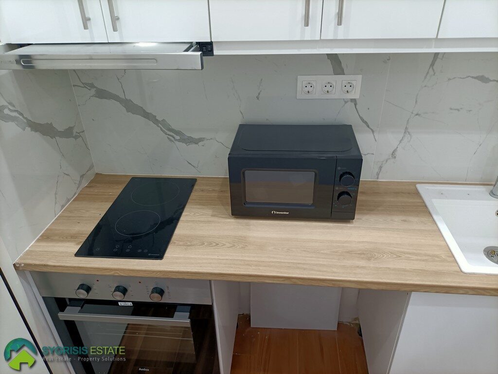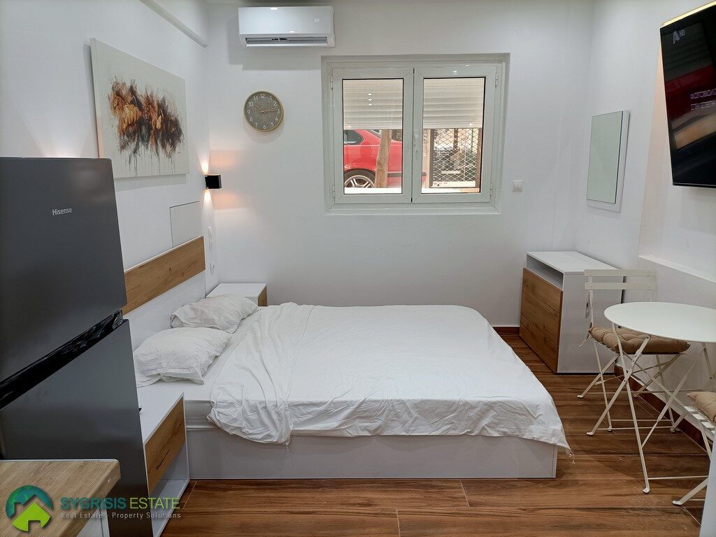 ATHENS PAGRATI, Studio Apartment of 30 sq.m., constructed 1970, fully renovated in 2023, fully furnished and equipped, semi-basement, it is a frontage apartment, bright, excellent layout, 1 open plan kitchen with the bedroom, bathroom, air conditioning, security door, ceramic wood like tiles flooring, energy-efficient aluminum window frames with double glazed windows, screens, and electric roller shutters, ergonomic kitchen cabinets with synthetic sink and electrical appliances (refrigerator, built-in ceramic hobs, built-in electric oven, microwave oven, extractor hood), wardrobe in the bedroom with queen sized bed, 2 side tables and 65’ SMART TV, a dining table with 2 chairs, Boudoir furniture with a drawer and a mirror, bathroom with walk-in shower cabin, communal washing/dryer machine, new electrical and plumbing systems, new electrical power panel, outlets, and switches, new electric water heater, the water heater has a timer switch on the electrical panel for energy saving, in the heart of Pagrati area, 170 meters from the Pagrati fountain square, 400 meters from Pagrati Park and bus stop which is just 4 stops from Evangelismos Metro Station.