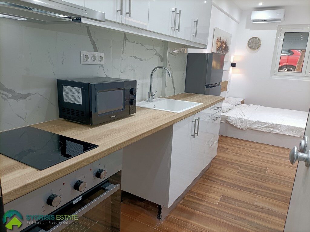 ΑΘΗΝΑ ΠΑΓΚΡΑΤΙ, Στούντιο 30 τ.μ., κατασκευή 1970, πλήρως ανακαινισμένο το 2023, πλήρως επιπλωμένο και εξοπλισμένο, ημιυπόγειο, προσόψεως, φωτεινό, άριστη διαρρύθμιση, 1 ενιαία κουζίνα με υπνοδωμάτιο, μπάνιο, κλιματισμός, πόρτα ασφαλείας, δάπεδα κεραμικά πλακάκια σε απομίμηση ξύλου, ενεργειακά κουφώματα αλουμινίου με διπλά τζάμια, σίτες και ηλεκτρικά ρολά, εργονομικά ντουλάπια στην κουζίνα με συνθετικό νεροχύτη και ηλεκτρικές συσκευές (ψυγείο, εντοιχισμένες κεραμικές εστίες, εντοιχισμένος ηλεκτρικός φούρνος, φούρνος μικροκυμάτων, απορροφητήρας), ντουλάπα στο υπνοδωμάτιο με υπέρδιπλο κρεβάτι, 2 κομοδίνα και 65’ ιντσών τηλεόραση SMART, τραπέζι φαγητού με 2 καρέκλες, έπιπλο μπουντουάρ με συρτάρια και καθρέπτη, λουτρό με καμπίνα ντουζιέρα, κοινόχρηστο πλυντήριο/στεγνωτήριο στον διάδρομο υποδοχής, αποθηκευτική ντουλάπα στο διάδρομο, καινούργια ηλεκτρολογική και υδραυλική εγκατάσταση, καινούργιος πίνακας ρεύματος, πρίζες και διακόπτες, καινούργιος ηλεκτρικός θερμοσίφωνας, η λειτουργία του ηλεκτρικού θερμοσίφωνα γίνεται με χρονοδιακόπτη στον πίνακα ρεύματος για χαμηλή κατανάλωση ρεύματος, στην καρδιά του Παγκρατίου, 170 μέτρα από την κεντρική πλατεία σιντριβάνι Παγκρατίου , 400 μέτρα από το Άλσος Παγκρατίου και στάση λεωφορείων με μόλις 4 στάσεις από τον σταθμό Μετρό Ευαγγελισμού.