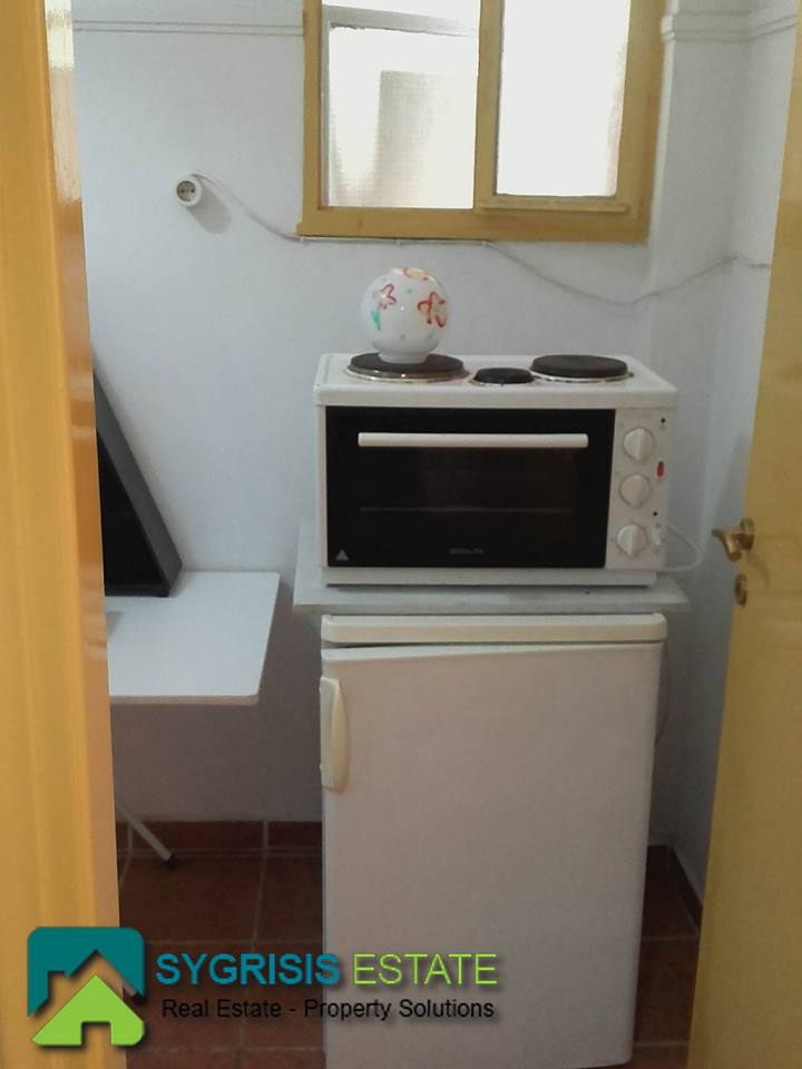 Pagrati, Varnava Square, Studio Apartment 33 sq.m. , 1st floor, interior, 1 bedroom, 1 bathroom, central heating, air conditioning, ideal for students, good condition, safe, tiled floors, furnished and equipped (double bed, office desk with drawers , Air conditioner Inverter, small convection oven with burners on top, small refrigerator, washing machine), wardrobe in the bedroom, small balcony, hallway, kitchen, bathroom with bathtub, storage space from above bathroom, close to transportation and supermarket.