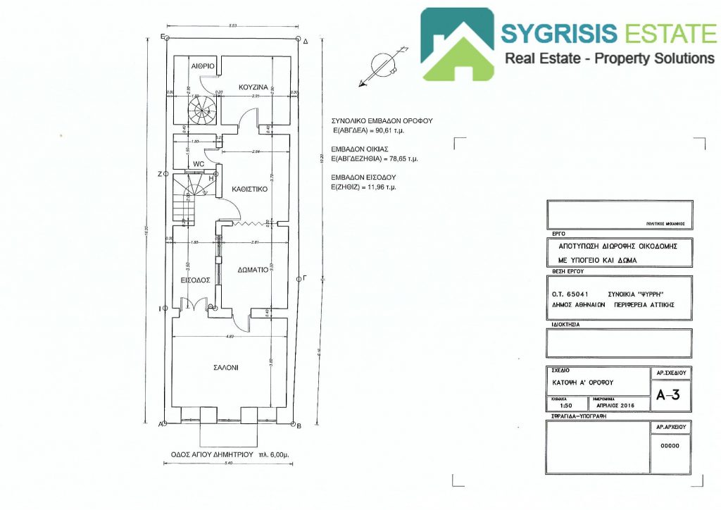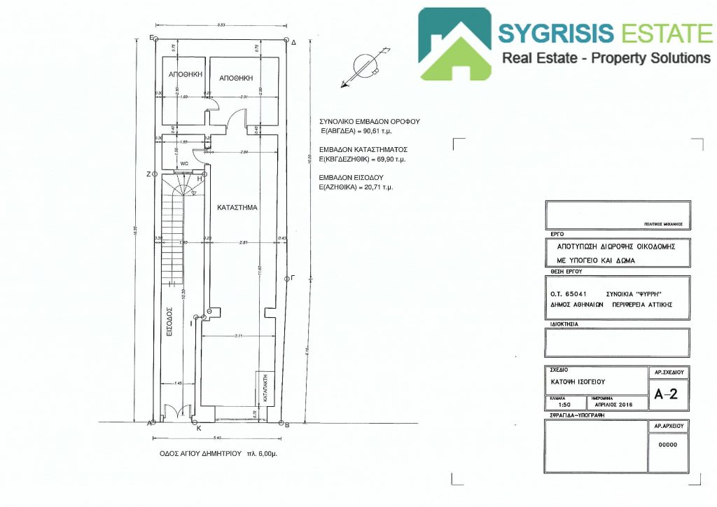 ΑΘΗΝΑ ΚΕΝΤΡΟ – Εμπορικό Τρίγωνο, Πλατεία Ψυρρή, κτίριο 181 τ.μ., 4 επίπεδα 30, 91, 91 και 28 τ.μ., υπογείου – ισογείου – 1ου – Ταράτσα, προσόψεως, διαμπερές, κατασκευή 1907, διατηρητέο, παραδοσιακό, χρήζει ανακαίνισης, Παλαιό , Διατηρητέο ( Φ.Ε.Κ. 545/17.05.1993 ), υπόγειο: 30,25 τ.μ., Ισόγειο: 90,61 τ.μ. ( Κατάστημα 69,90 τ.μ. και Είσοδος 20,71 τ.μ. ), 1 ος Όροφος: 90,61 τ.μ. ( Οικία 78,65 τ. μ. και Είσοδος 11,96 τ. μ. ), ταράτσα: 14,00 τ. μ. ( Δώμα 14,00 τ. μ. ), βρίσκεται 100 μέτρα από την Πλατεία Ψυρρή και 250 μέτρα από το Μετρό Μοναστηράκι, απαιτείται αποκατάσταση καθώς έχουν καταρρεύσει η οροφή και τα πατώματα.