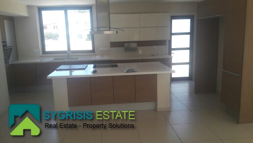 CYPRUS Nicosia, Engomi, newly built villa, 375 sq.m on a plot of 800 sq.m., built in 2009, 2 levels, ground floor – 1st floor, frontage and dual aspect, bright, excellent layout, 5 bedrooms (1 master), 5 bathrooms, 1 wc, ground floor open plan kitchen in living and dining area and guest wc, fireplace, security door, solar water heating system, storage room, heating is autonomous oil, 6 air conditioners, energy aluminum window frames with double glazing and shutters, marble floors, internal elevator, 4 bedrooms upstairs with their own bathrooms with large closets and balconies, unlimited view, large garden with lawn – trees and αν automatic electronic watering programmer, outdoor kitchen with sink, staff room in the garden with 1 bedroom kitchen and bathroom, in the kitchen of the main house includes two built-in ovens, ceramic hobs and cooker extractor hood in a counter on the center of the kitchen , 2 parking spaces, close to schools, supermarkets, restaurants, universities and transportation.