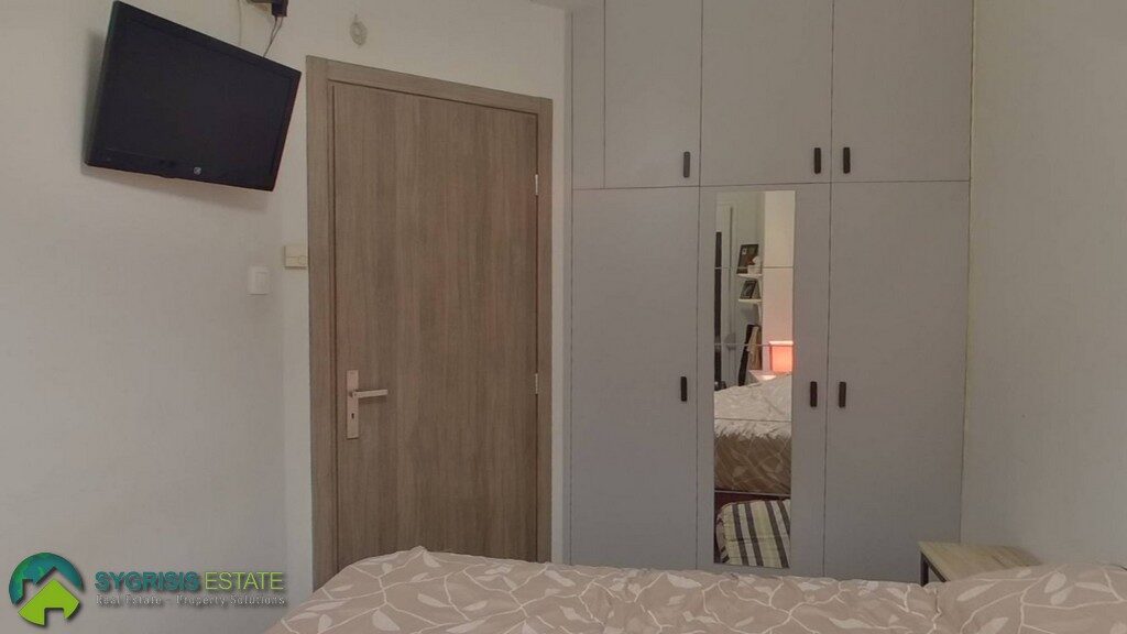 ATHENS PETRALONA, Ano Petralona, Whole Floor Apartment of 74 sq.m., constructed in 1975, renovated in 2019, elevated ground floor, bright, excellent layout, 2 bedrooms, 1 bathroom, 1 WC, open plan kitchen with the living room, corridor, balcony on the backside with access to it from the main bedroom, autonomous heating with convectors in every room with thermostat, air conditioning, solar water heater, security door, camera intercom, ready for installation alarm security system, energy-efficient aluminum window frames with double glazing and roller shutters, tiles flooring in all areas, built-in wardrobe in the main bedroom, bathroom with a walk-in shower, located 90 meters from a Park, 500 meters from Filopappou Hill, 300 meters from Petralona Metro Station, 400 meters from Harokopio University, and 900 meters (10 – 15 minutes walking distance) from Athens Heart Mall and Praktiker. TRUE 3D VIRTUAL TOUR